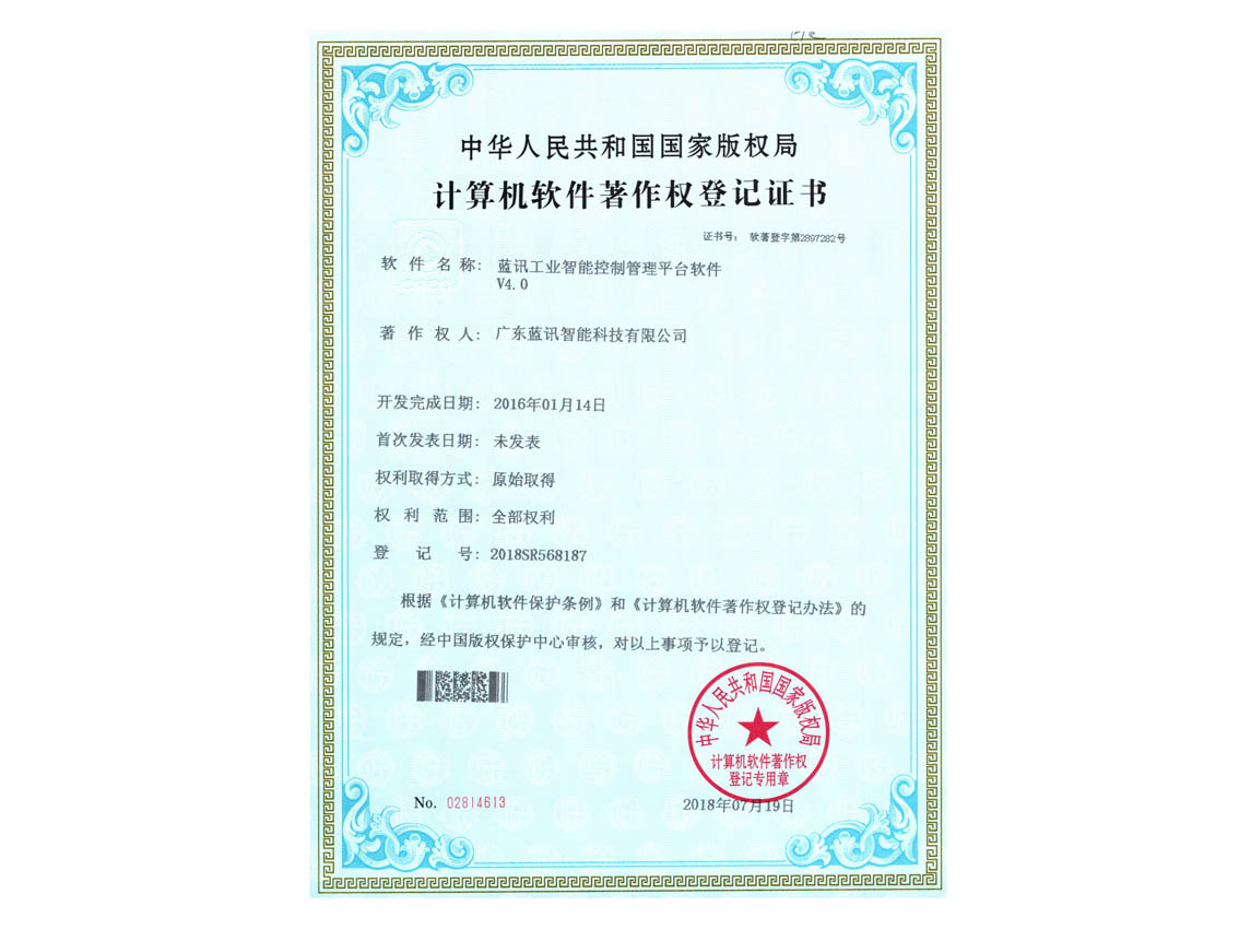 工業(yè)智能控制管理平臺軟件著作權