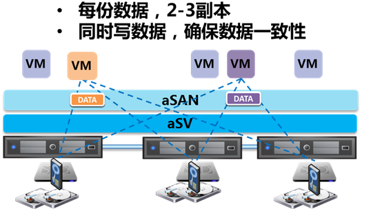 存儲(chǔ)可靠性:虛擬化存儲(chǔ)aSAN沒(méi)有采用傳統(tǒng)FC存儲(chǔ)的raid方式,而是把每份數(shù)據(jù)copy成多份副本進(jìn)行多副本存儲(chǔ),服務(wù)器只需要以常規(guī)手段掛載硬盤(pán),虛擬化存儲(chǔ)平臺(tái)會(huì)把數(shù)據(jù)、在不同的物理服務(wù)器硬盤(pán)里創(chuàng)建2個(gè)到3個(gè)一樣的副本。同時(shí),采用內(nèi)置的深信服持續(xù)數(shù)據(jù)保護(hù)軟件CDP,能實(shí)現(xiàn)24小時(shí)連續(xù)數(shù)據(jù)保護(hù),將RPO降低到1秒以內(nèi),從而實(shí)現(xiàn)企業(yè)數(shù)據(jù)零丟失。